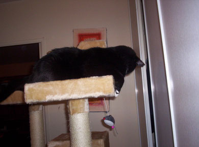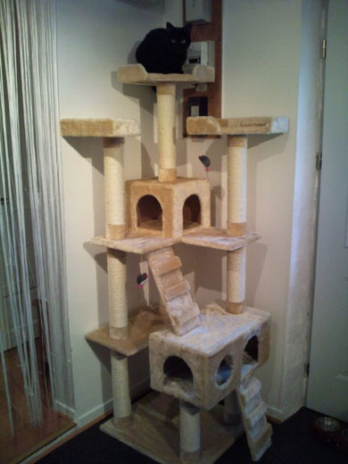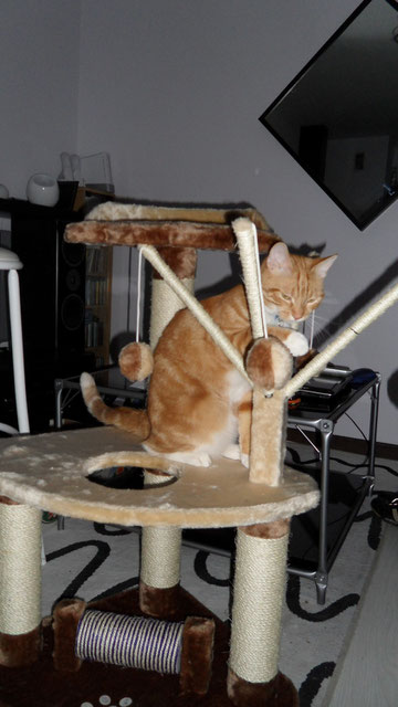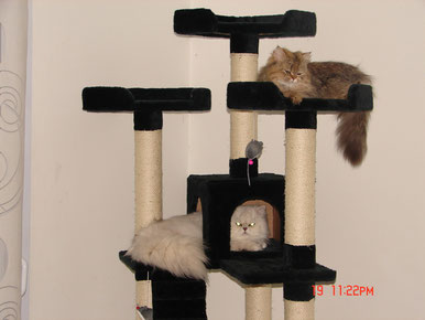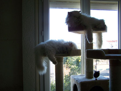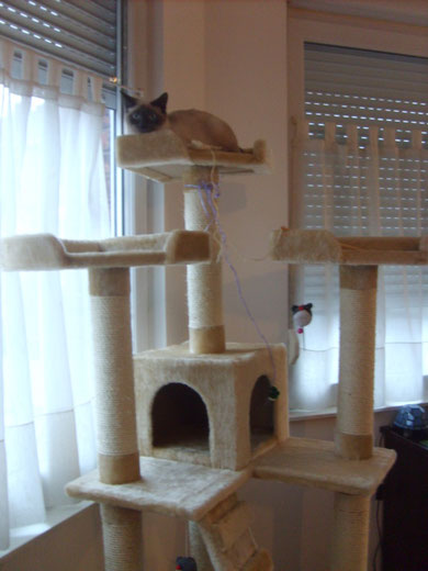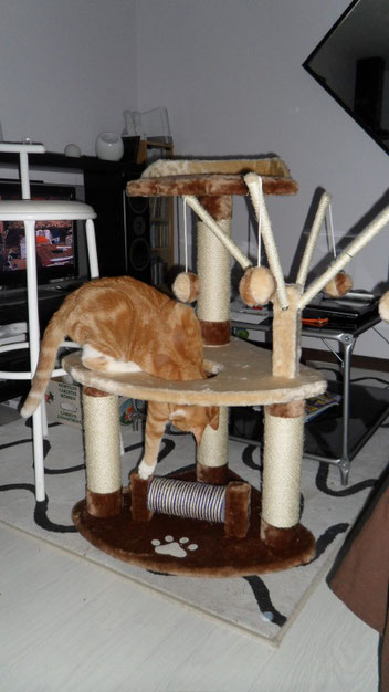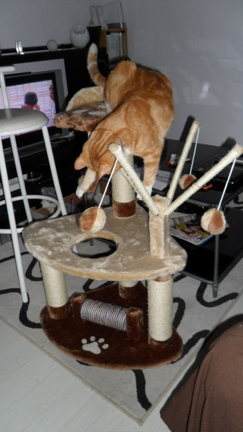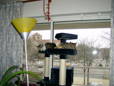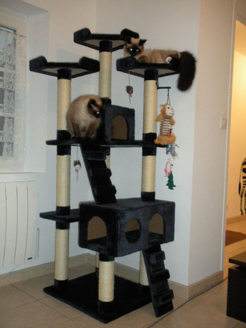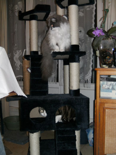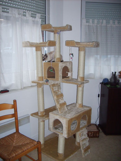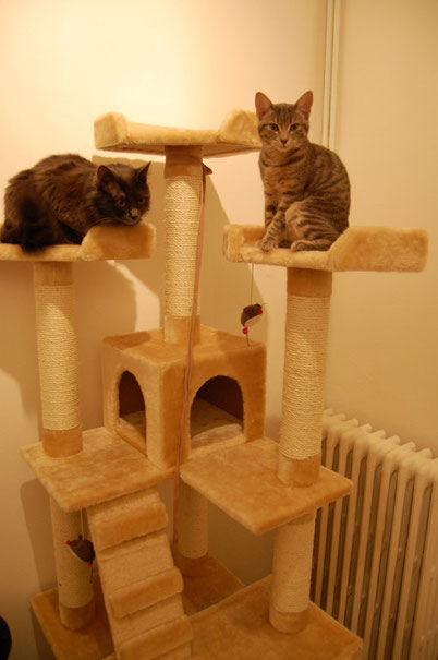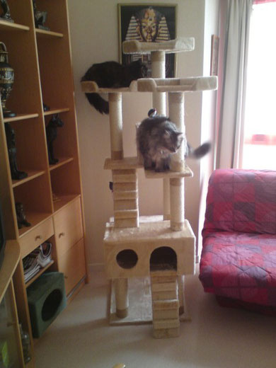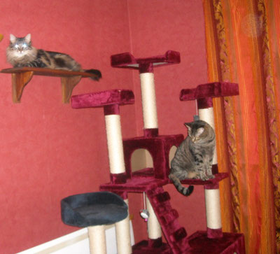 Merci à Xavier et à ses deux chats qui prennent magnifiquement la pose sur l'arbre à chat