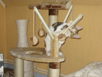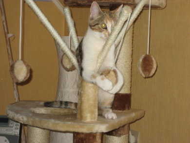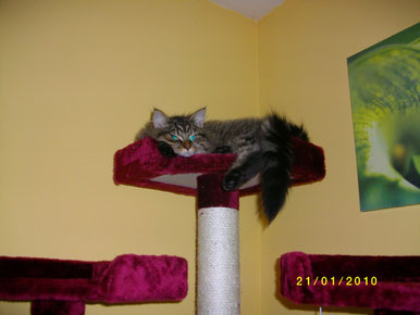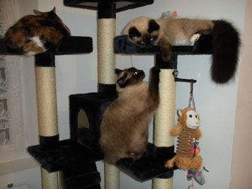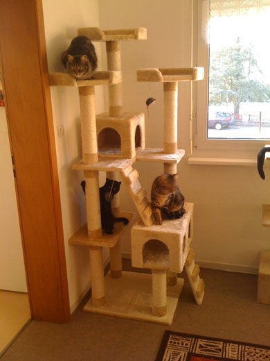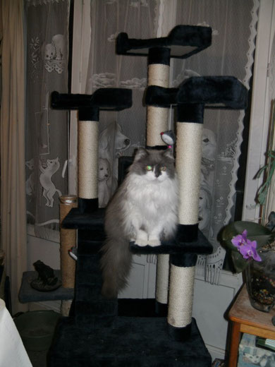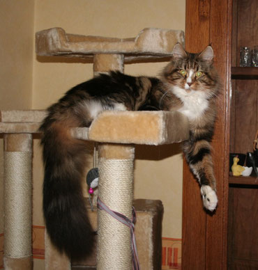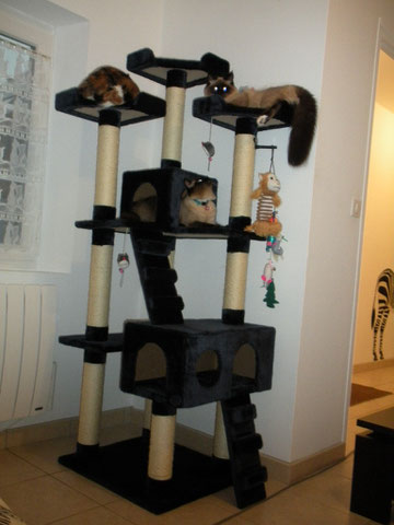 Merci à julie et à ses trois beaux et grands chats Dora, Deca et Emy sur l'arbre à chat Modèle Orphée...