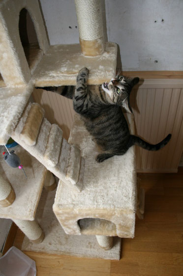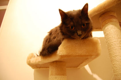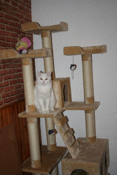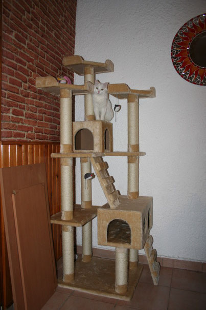 Merci à Pascale et à ses trois chats dont Princesse qui se sert de l'arbre à chat Modèle Orphée comme une échelle