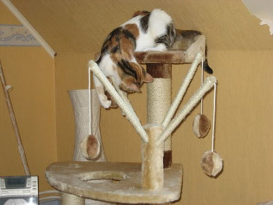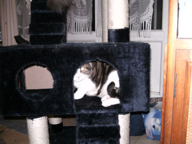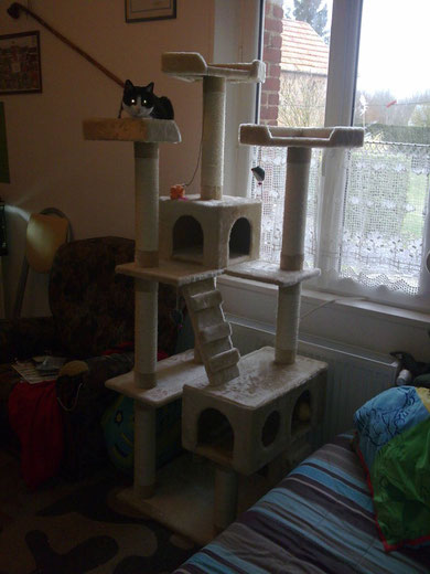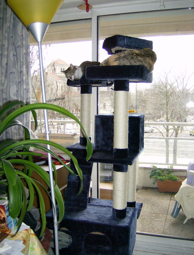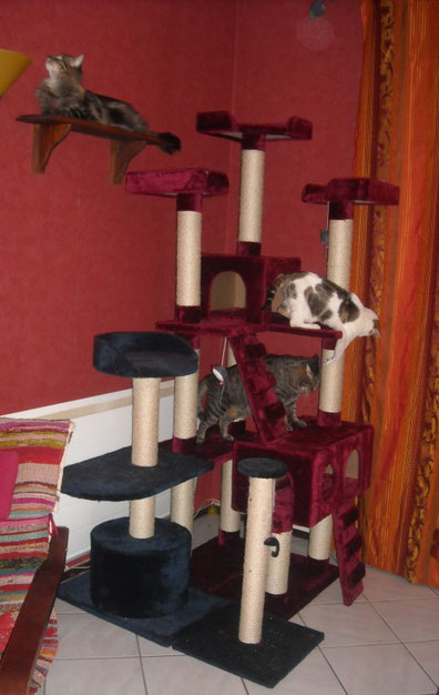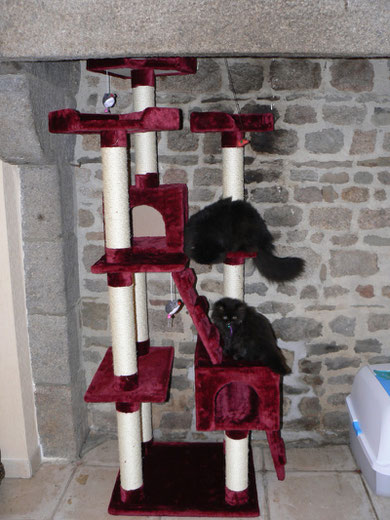 Merci à Jacqueline et à ses deux chats Trent et Mewen qui font la sieste haut perché sur l'arbre à chat